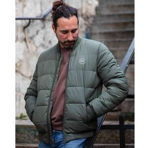 Blouson kaki matelassé écoresponsable à col Teddy unisexe, coupe classique.