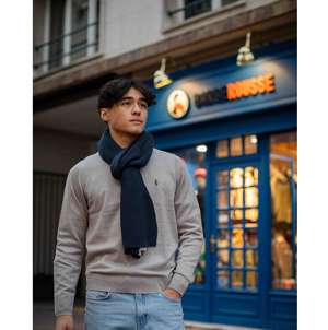 Pull col rond gris chiné pour un style tendance et élégant. Texture légère et confortable. Coupe normale.