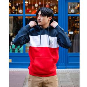 Sweat à capuche tricolore unisexe, coupe classique.