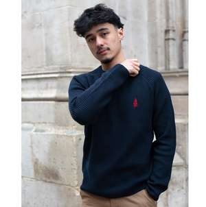 Pull homme lourd et épais, écoresponsable à grosses mailles marine. Manches raglan.