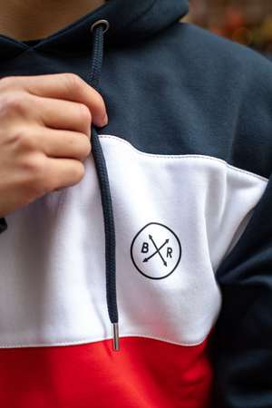Sweat à capuche tricolore unisexe, coupe classique.