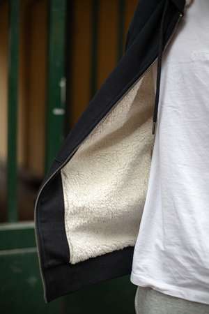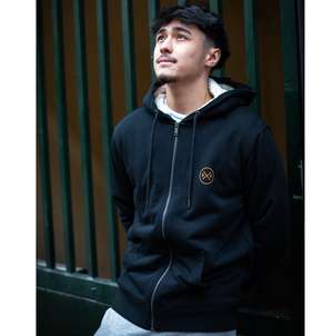 Sweat à capuche zippé noir unisexe doublé en Sherpa recyclé, coupe classique.