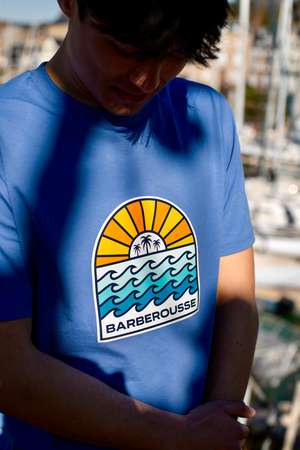T-shirt iconique unisexe bleu pale, coupe classique.